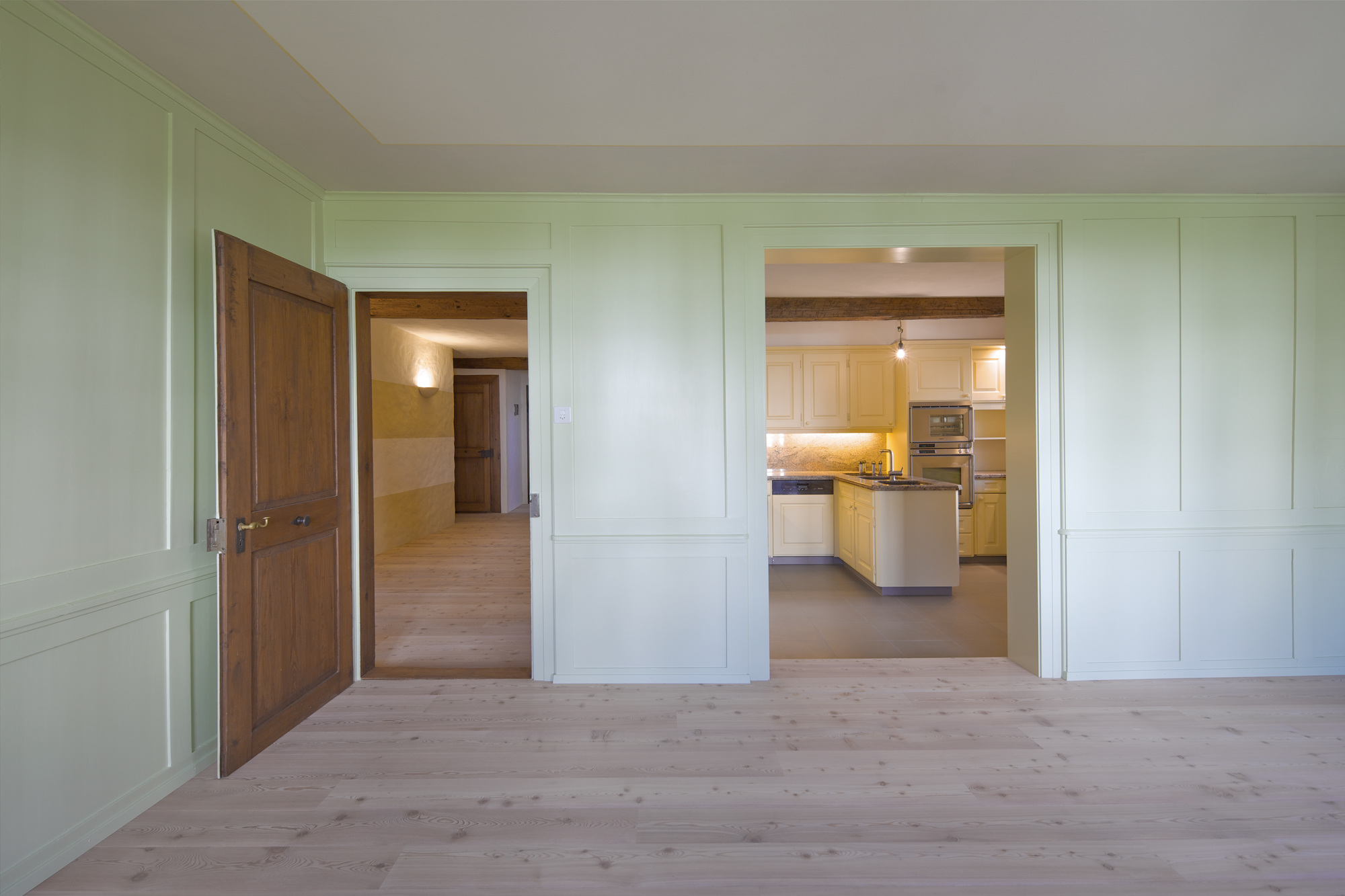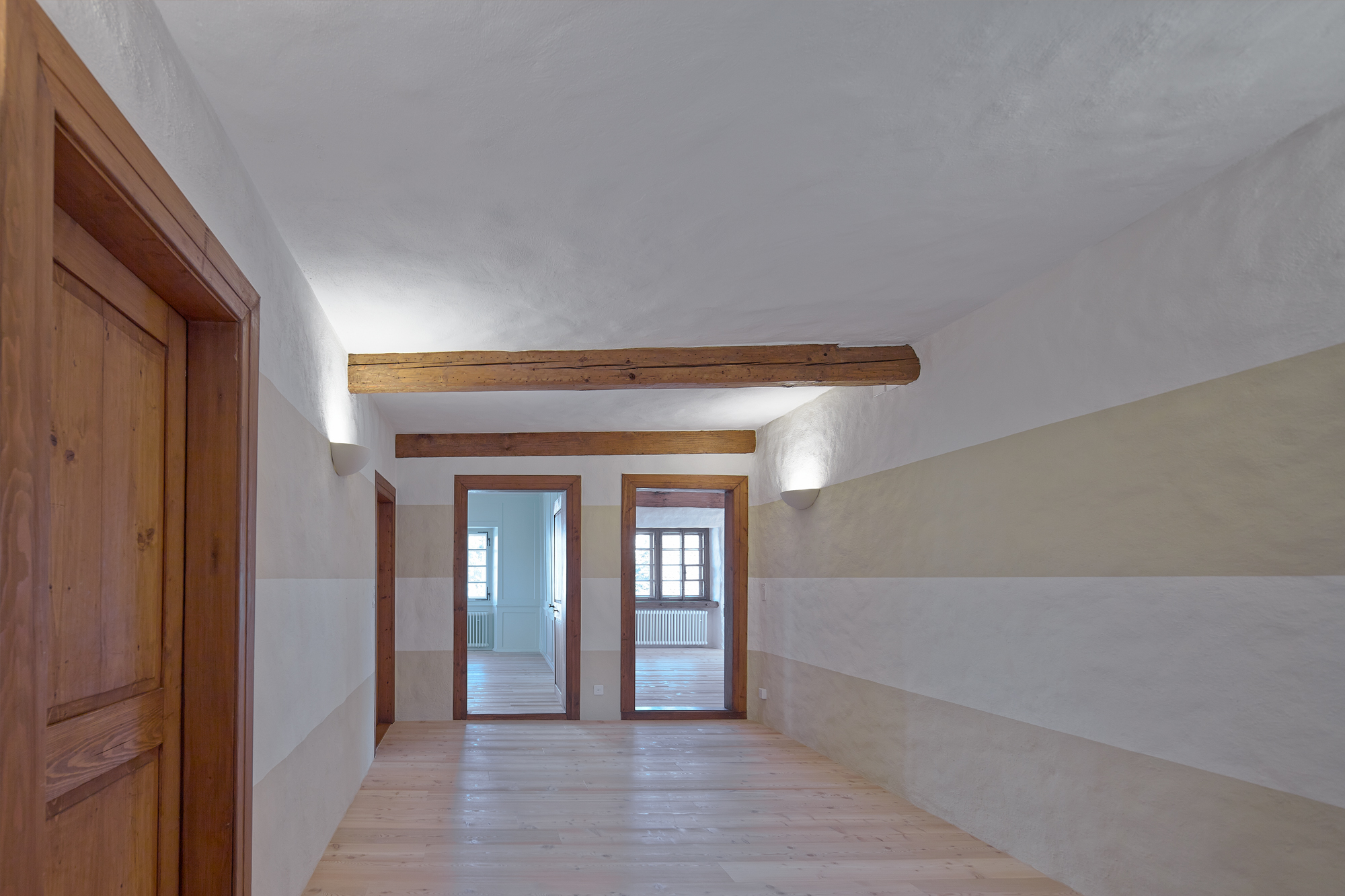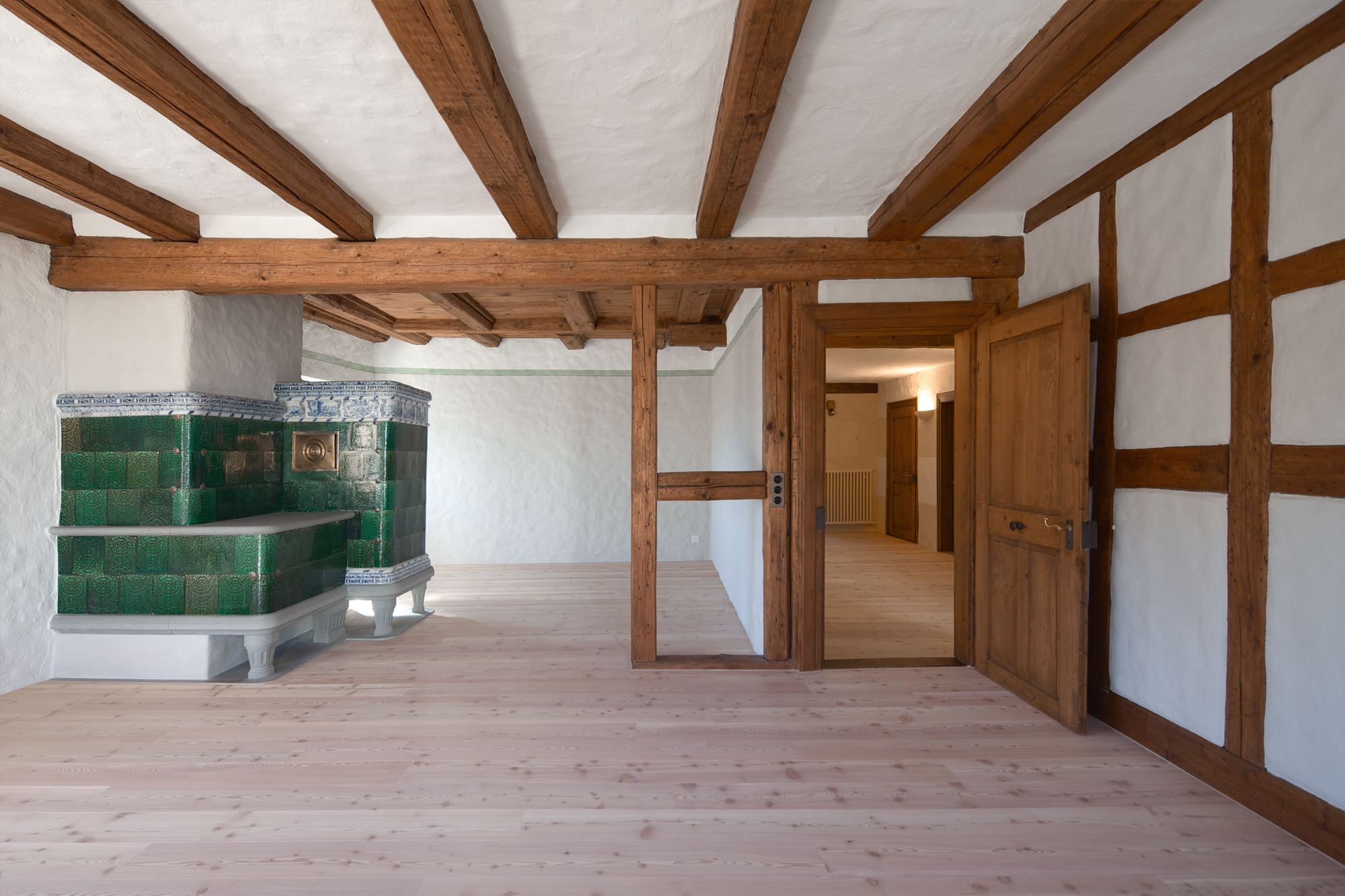 Planung und Ausführung der Renovation der Wohnung im Erdgeschoss und der Maisonettwohnung 1. OG/DG in 2 Etappen, unter Berücksichtigung der denkmalpflegerischen Anforderungen.
